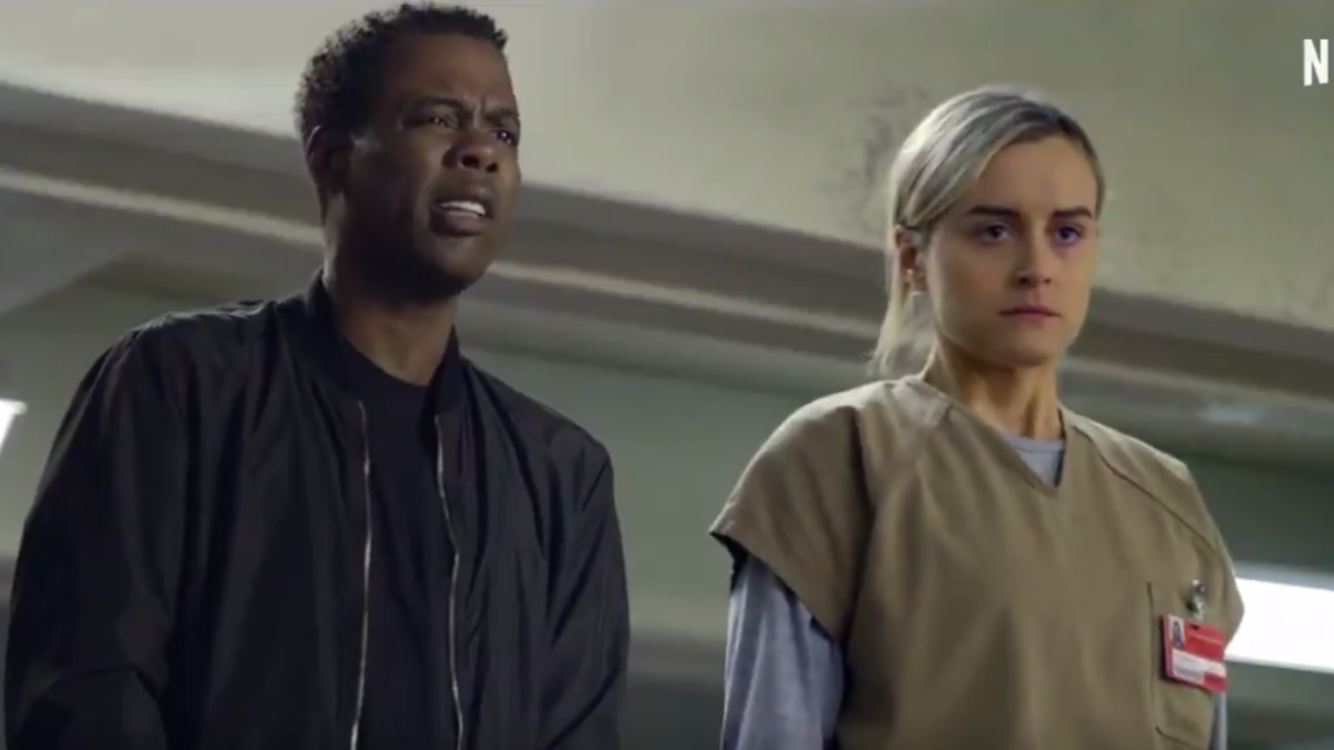 Each famous comedian crashed a prestige Netflix drama in the promotional trailer. Seinfeld rolls into a Frank Underwood monolouge, while Chappelle teams up with the kids from Stranger Things. Chris Rock starts to inspire a prison riot with the ladies from Orange is the New Black and Ellen Degeneres gives Winston Churchill a piece of her mind in The Crown.